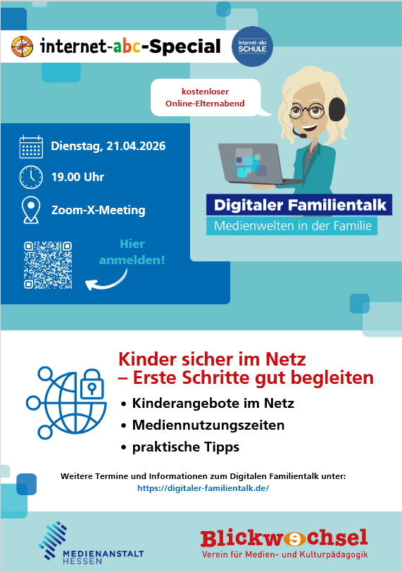 wir freuen uns, Sie im Rahmen der Internet-ABC-Schule auf unser diesjähriges Elternangebot „Digitaler Familientalk: Internet-ABC Special“ hinzuweisen.