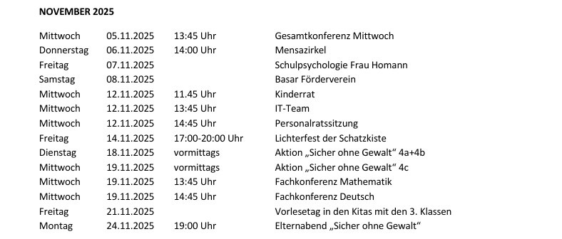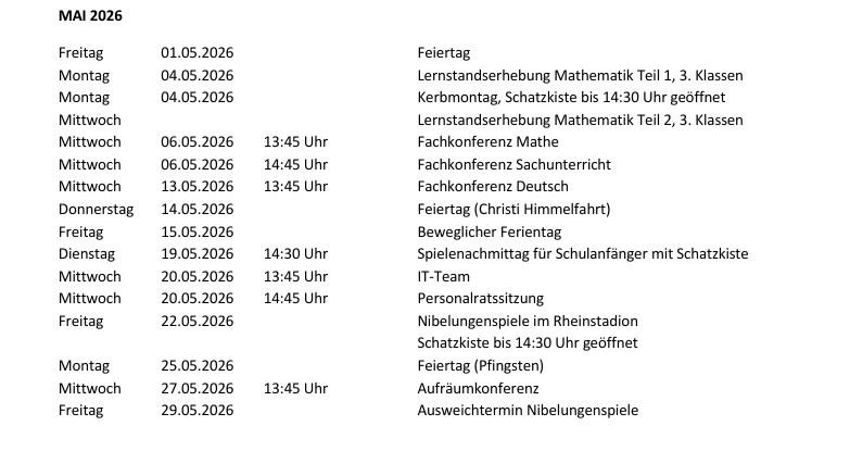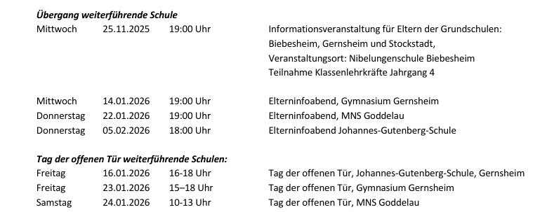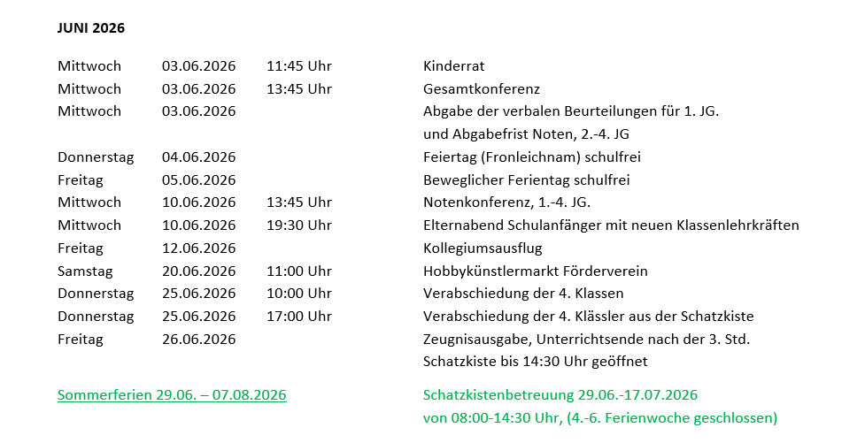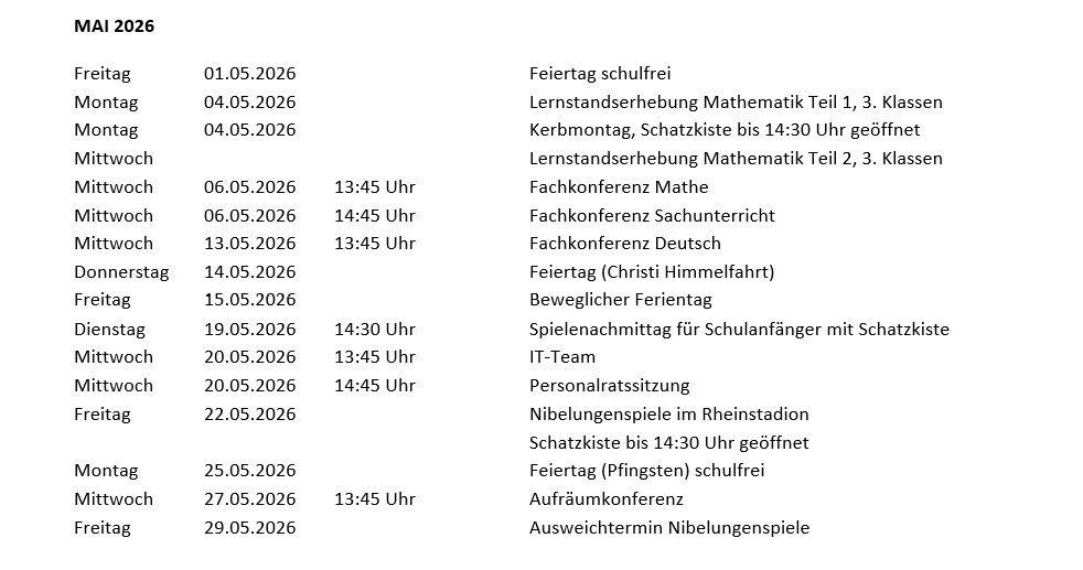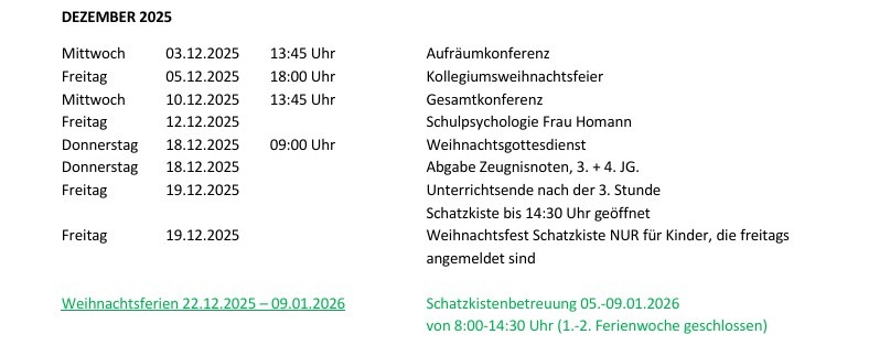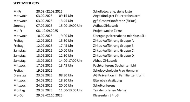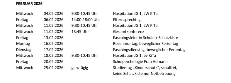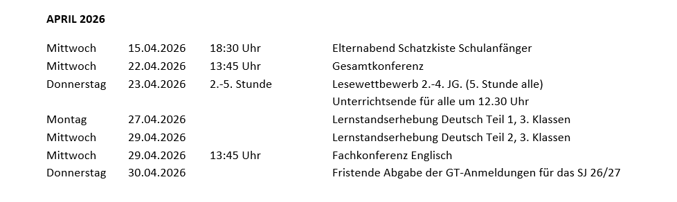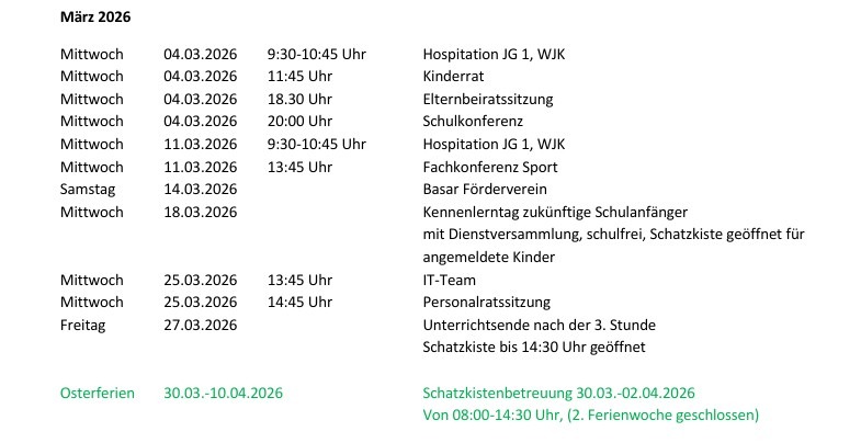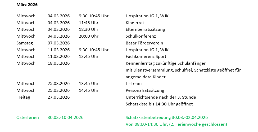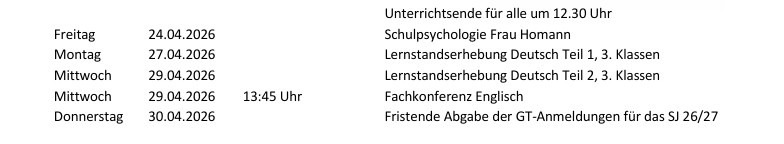 Kurzfristige Änderungen erhalten Sie als Eltern über die Schulleitung per Mail oder finden Sie jeweils im Blog.